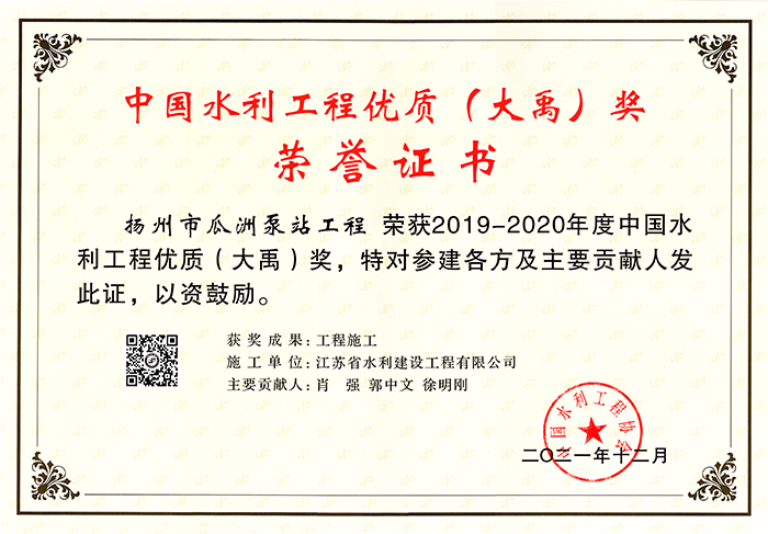 2022年度揚州市建筑業先進企業榮譽證書